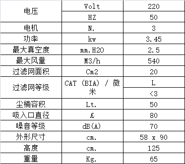 下拉式尘桶,容量50升,底部装有车轮,处理桶内所集物料非常安全方便。也可以根据具体需要使用塑料袋直接集尘。钢制底盘坚固耐用,底部装有2个旋转轮,其中一个带刹车;所有金属件均经过环氧漆表面处理。